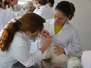 Atualmente, os Médicos Veterinários contam para lhes auxiliar no exercício da sua atividade com auxiliares ou assistentes cuja única formação que possuem é passada pelo próprio Médico Veterinário.